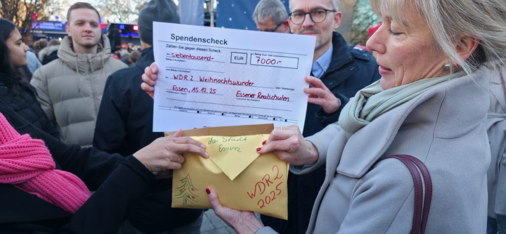 Die Essener Realschulen überreichen ihre gemeinsame Spende beim WDR Weihnachtswunder